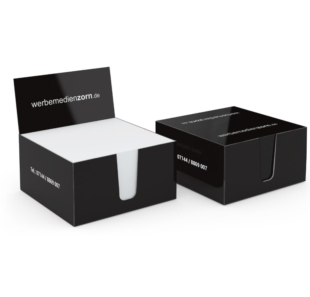 Material: Notizzettel: weiß, 80 g/qm, Box: 380 g/qm GC1